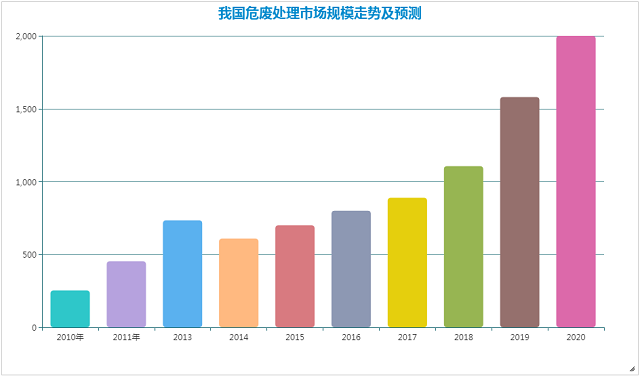 按照3500元/吨的价格计算,2020年我国危废处理市场保守估计可以突破1000元大关。持乐观态度的分析机构甚至认为,在“十三五”时期,我国危废处理市场可以达到2000亿元。
