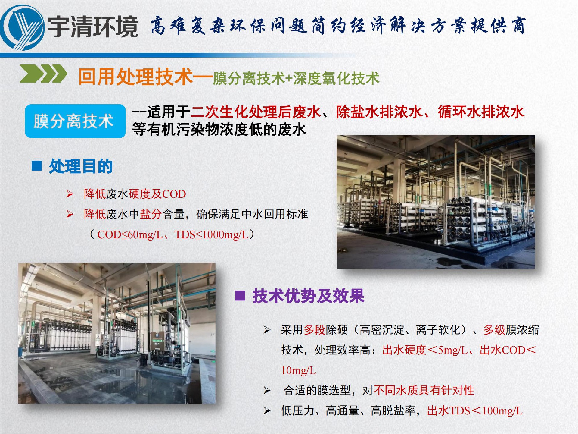 回用处理技术—膜分离技术+深度氧化技术